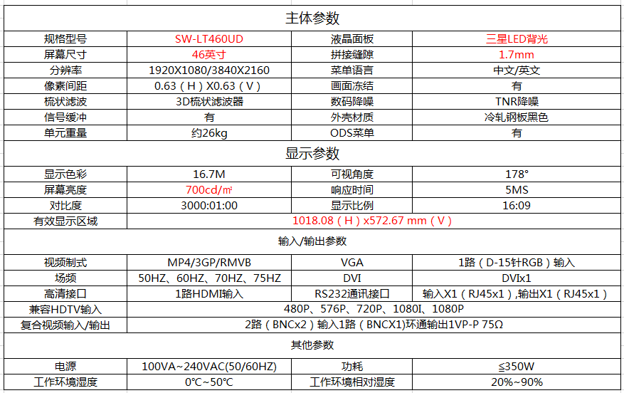 產(chǎn)品型號:拼接屏-46寸1.7mm拼縫